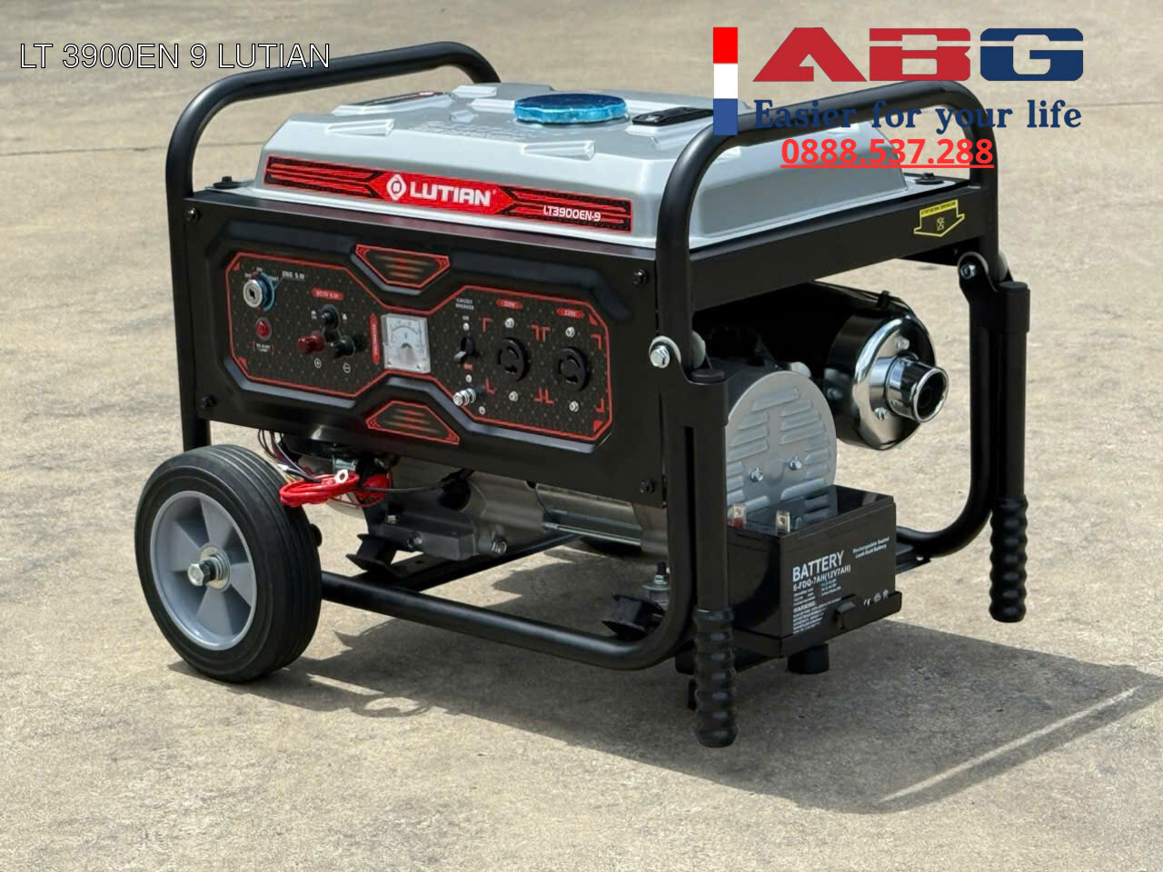 LT 3900EN 9 LUTIAN là máy phát điện chạy xăng công suất 3kw, điện áp 220V / 50Hz, sử dụng khởi động đề điện, có bánh xe và phù hợp cho nhu cầu điện dự phòng cơ bản tại gia đình, ki-ốt hoặc cửa hàng nhỏ.